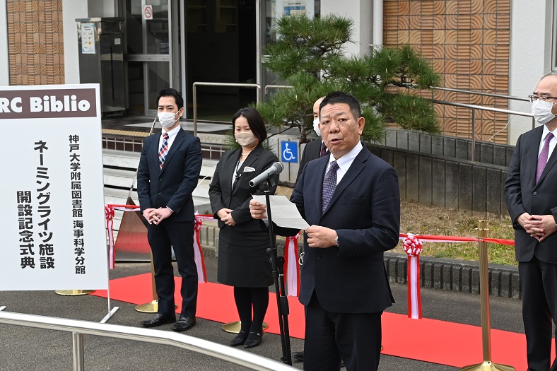 ネーミングライツ制度は、2018年(平成30年)2月、本学の財政基盤強化及び教育研究環境の向上をサポートしていただける企業との連携強化のため導入したものです。深江キャンパスの「附属図書館海事科学分館1階学生自習室」を対象としたネーミングライツ公募手続きを経て、2022年(令和4年)12月14日に日本無線株式会社と協定を締結し、同施設は2023年(令和5年)1月以降、「JRC Biblio」と呼称することになりました。