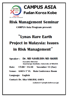 国際協力研究科・キャンパスアジアプログラムでは以下のテーマでマラヤ大学アジア・ヨーロッパ研究所のナスルディン・アキール所長をお招きして下記の日時で講演会 (セミナー) を実施します。