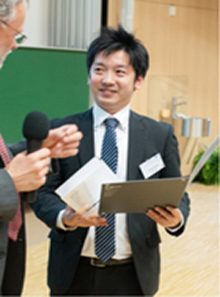 受賞発表の題目は「A Study on Inhibitory Mechanism of Lipid Absorption by α-Cyclodextrin (αCD) Administration (α-シクロデキストリン摂取による脂質吸収低減効果のメカニズムに関する研究)」というものです。水溶性の食物繊維であるα-シクロデキストリンは脂質低減作用を有することがこれまでに知られていましたが、今回の研究で、α-シクロデキストリンと胆汁に含まれるレシチンの相互作用がコレステロールの吸収抑制に関連していることが明らかになりました。本研究により、α-シクロデキストリンがメタボリックシンドロームをはじめとする生活習慣病の新規治療方法の開発に利用できることが期待されます。