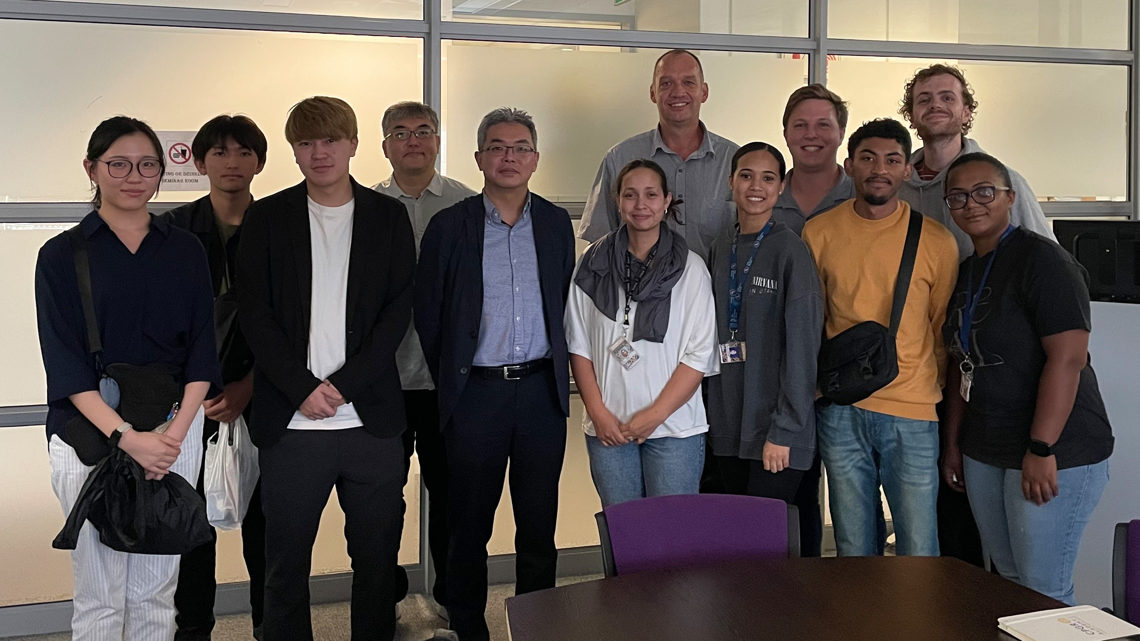 A research exchange meeting was held at SU between faculty and students from both universities (SU: Prof. Den Haan, Prof. Volschenk, Prof. Görgens, and one student; Kobe: Prof. Hasunuma, Prof. Asamizu, and three students). While the Hasunuma Laboratory focuses on experimental metabolic engineering, the SU group — predominantly chemical engineers — conducts techno-economic and environmental modeling of yeast-based 3-hydroxypropionic acid production. This application-oriented approach offered a valuable new perspective for the Hasunuma Laboratory. Also noteworthy was how local context shapes research: given South Africa's active sugarcane industry, the SU group utilizes molasses as a fermentation substrate. Relevant publications and materials were exchanged, and both parties agreed to strengthen future collaboration.The subsequent laboratory tour provided an opportunity to observe automated research equipment and a Fast Protein Liquid Chromatography (FPLC) system not currently in use at the Hasunuma Laboratory, offering valuable insights into potential expansions of the laboratory's experimental capabilities.