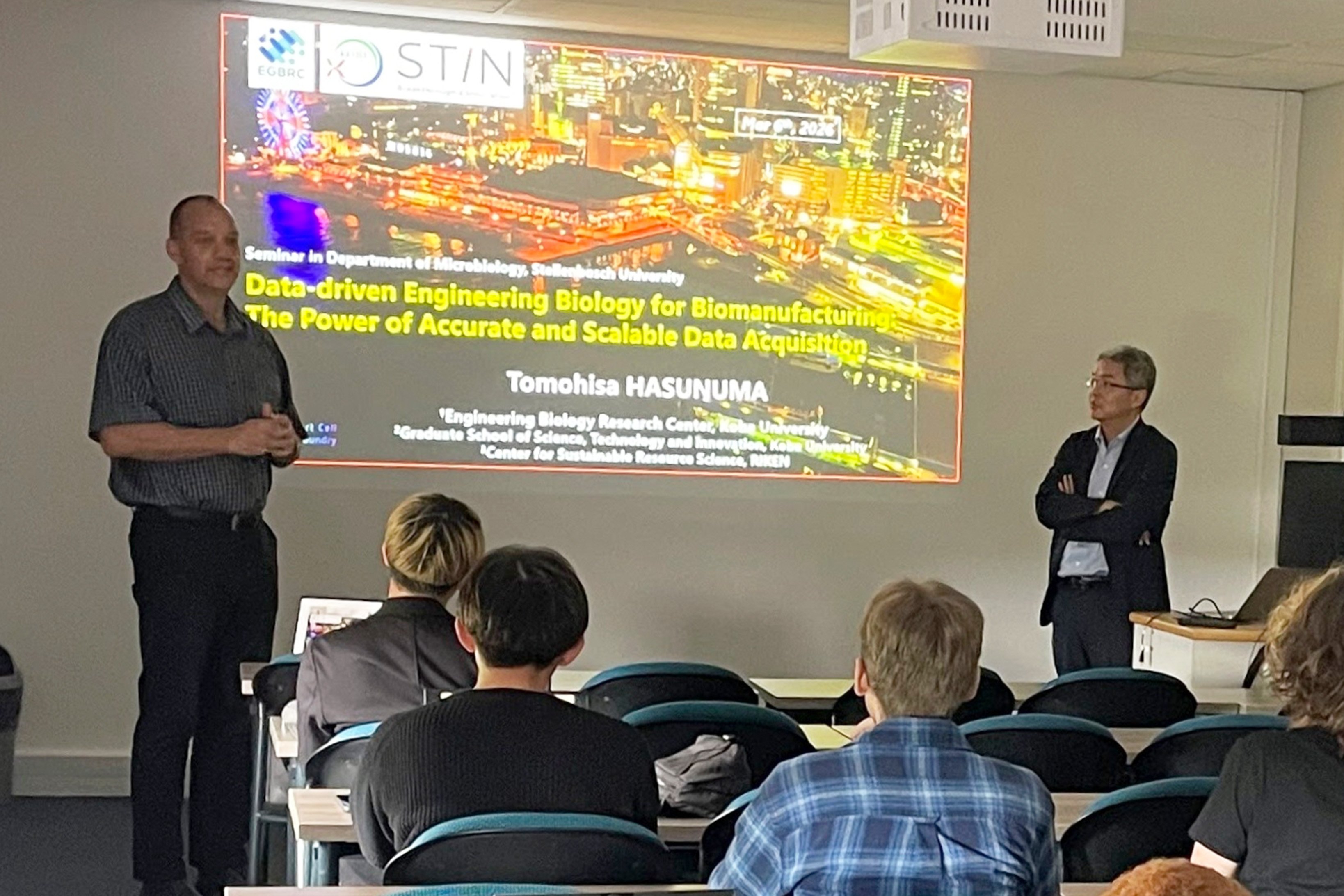 On March 4 and 6, 2025, members of the Hasunuma Laboratory at Kobe University conducted a research exchange program in South Africa with Stellenbosch University (SU) and the University of the Western Cape (UWC). The program was built on the existing collaborative relationship between Prof. Hasunuma and Prof. Den Haan, who joined SU in 2025, and also aimed to share information regarding the planned short-term research stay of SU students at Kobe University.