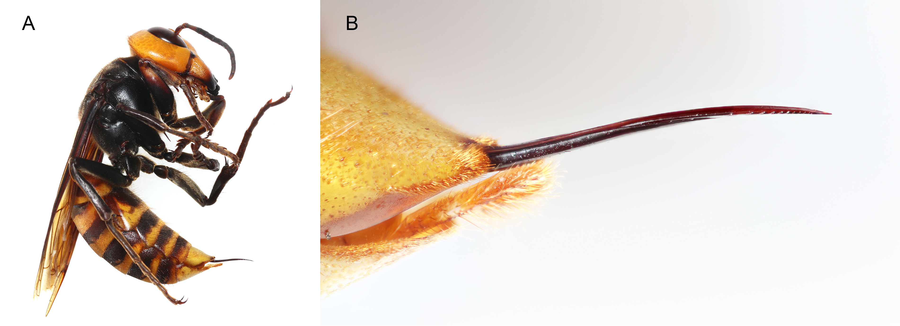 The venomous stinger of an Asian giant hornet (Vespa mandarinia). The venom injected by this stinger can cause sharp, intense pain as well as local tissue damage and systemic effects such as destruction of red blood cells and cardiac dysfunction, which may even be fatal. © Shinji Sugiura, Ecosphere 2025 (DOI 10.1002/ecs2.70457) (CC BY)