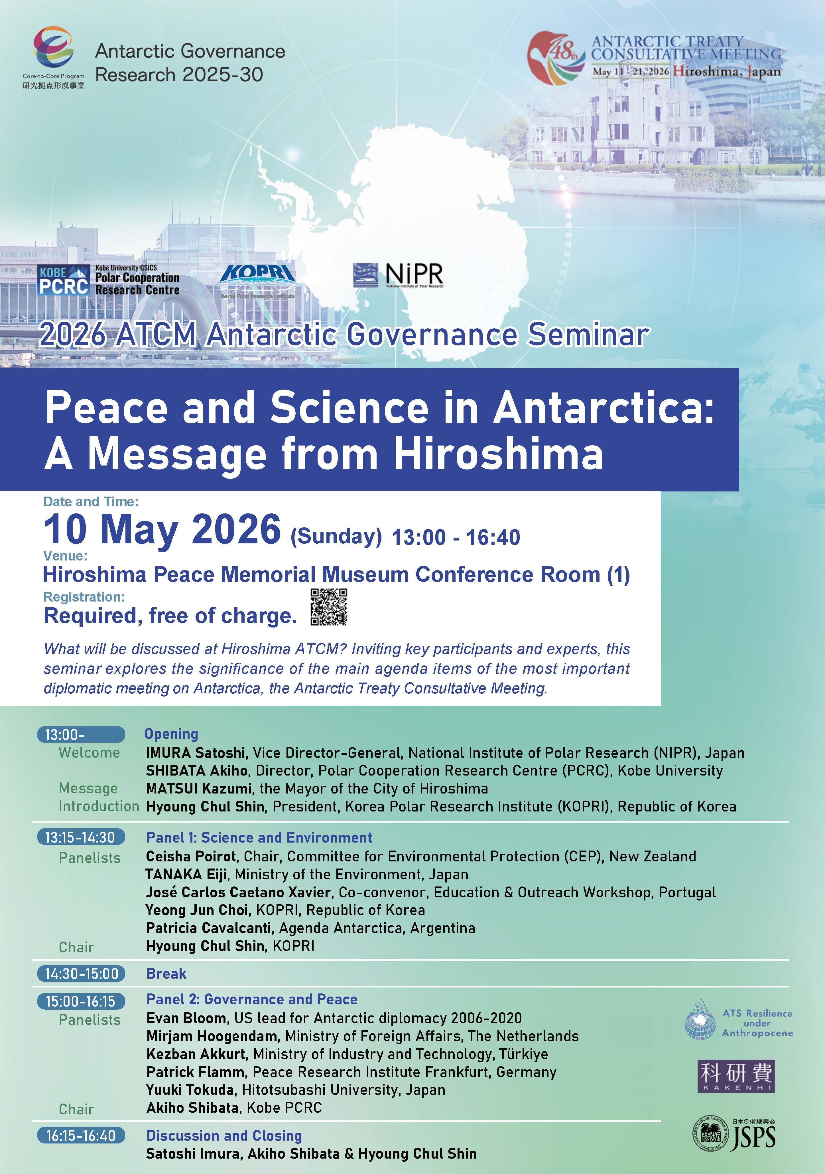 What will be discussed at Hiroshima ATCM? Inviting key participants and experts, this seminar explores the significance of the main agenda items of the most important diplomatic meeting on Antarctica, the Antarctic Treaty Consultative Meeting.
