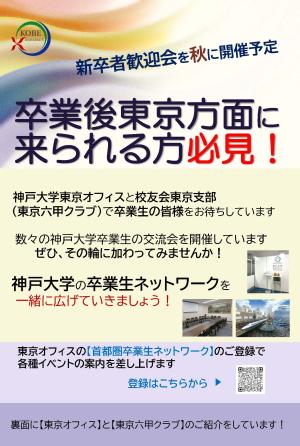 「神戸大学就活生への東京オフィス(キャリアセンター東京分室)の案内チラシ」