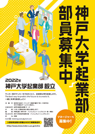 神戸大学起業部(2022年5月新設)は、産官学連携本部アントレプレナーシップセンターが運営する部活動です。学生ベンチャーの創出を目指して、サッカー部がサッカーをするように起業部は起業します。チームでビジネスプランを作成し、ビジネスプランコンテスト等への参加を通して、起業を目指します。新入生はもちろん、学部2年生から大学院生、留学生も歓迎します。楽しく本気で活動しましょう。