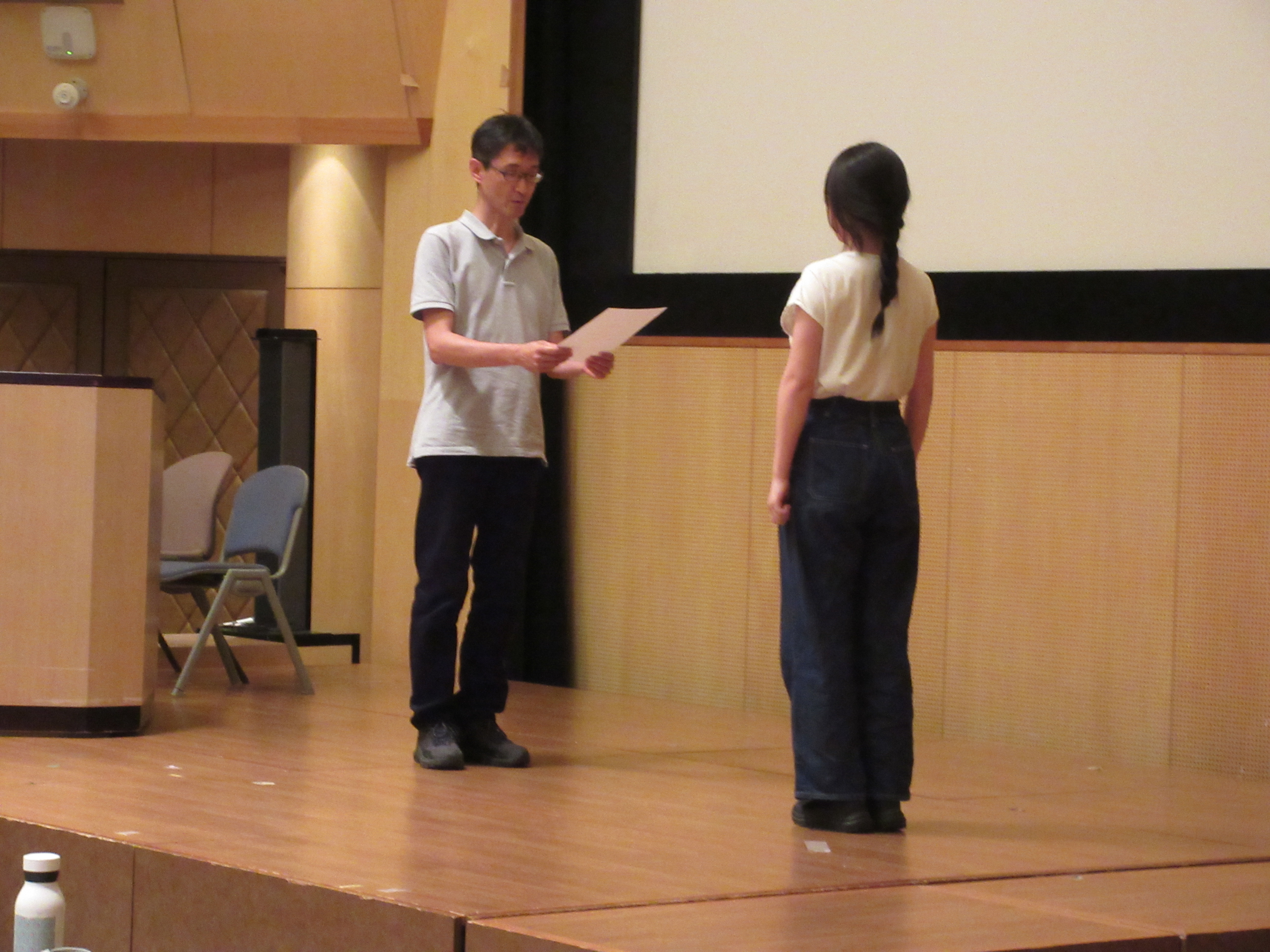 修了証書授与式では、全講義に出席した受講生に、修了証書と記念品が授与されました。「高大連携特別講義1」は85名、「高大連携特別講義2」は82名の計157名が修了しました。