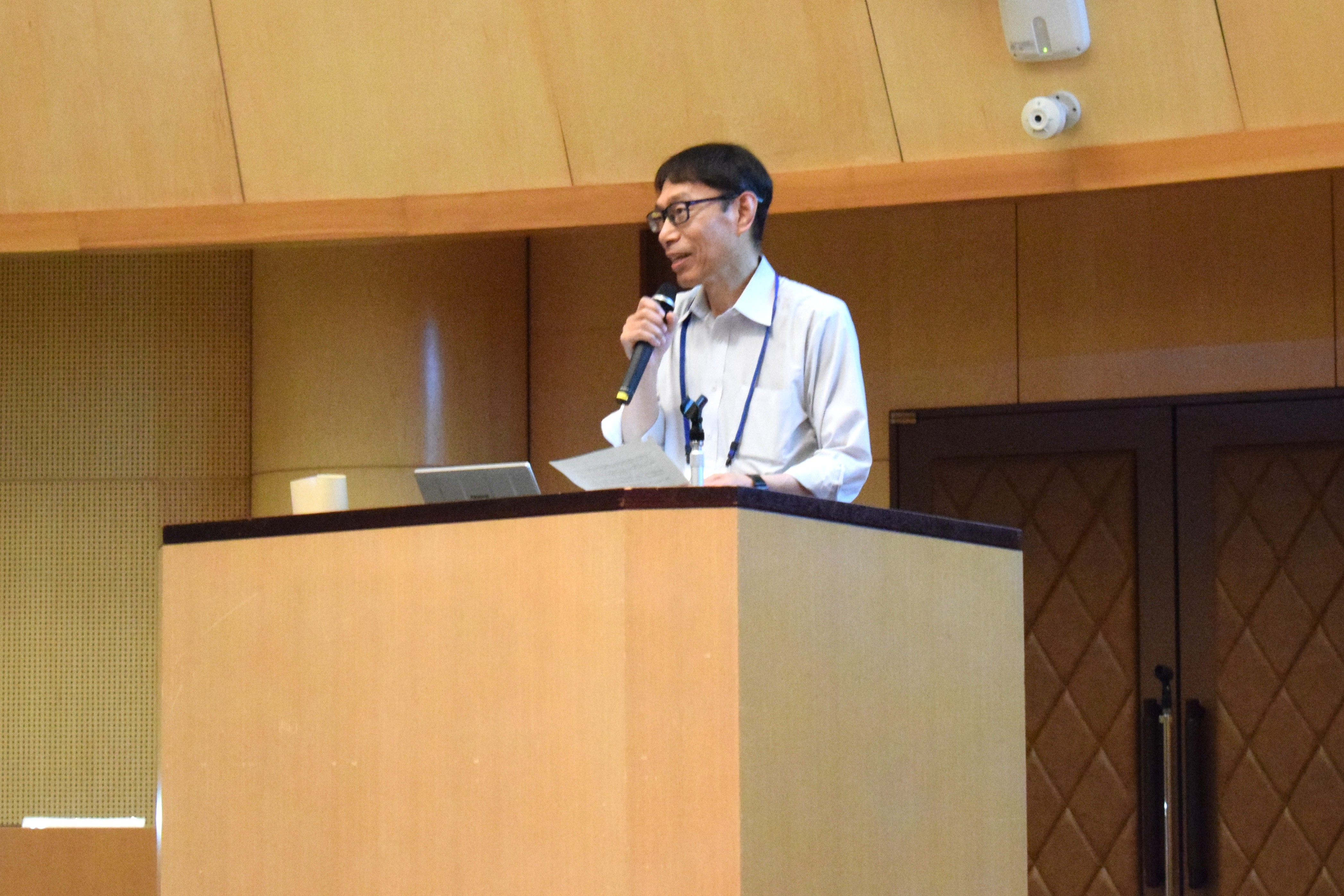 シンポジウムの開催に先立ち、上東貴志センター長より、開会の挨拶および趣旨説明がありました。挨拶の中では、「計算社会科学」という比較的新しい研究分野の紹介があり、会場の高校生らは真剣に聞き入りました。