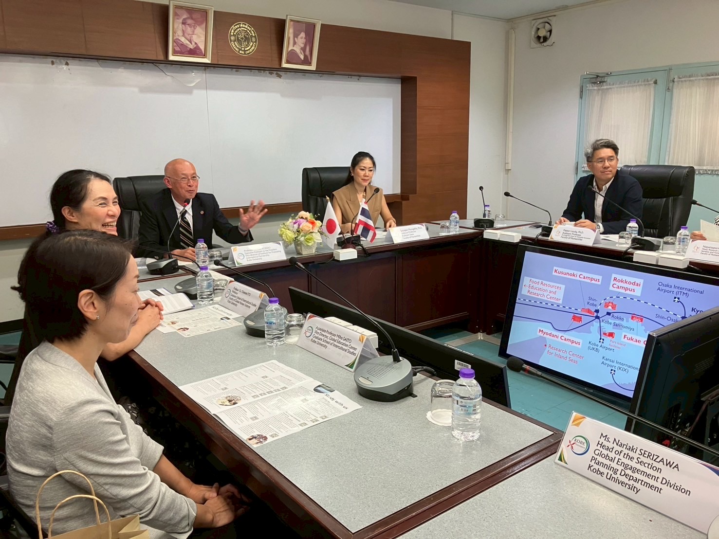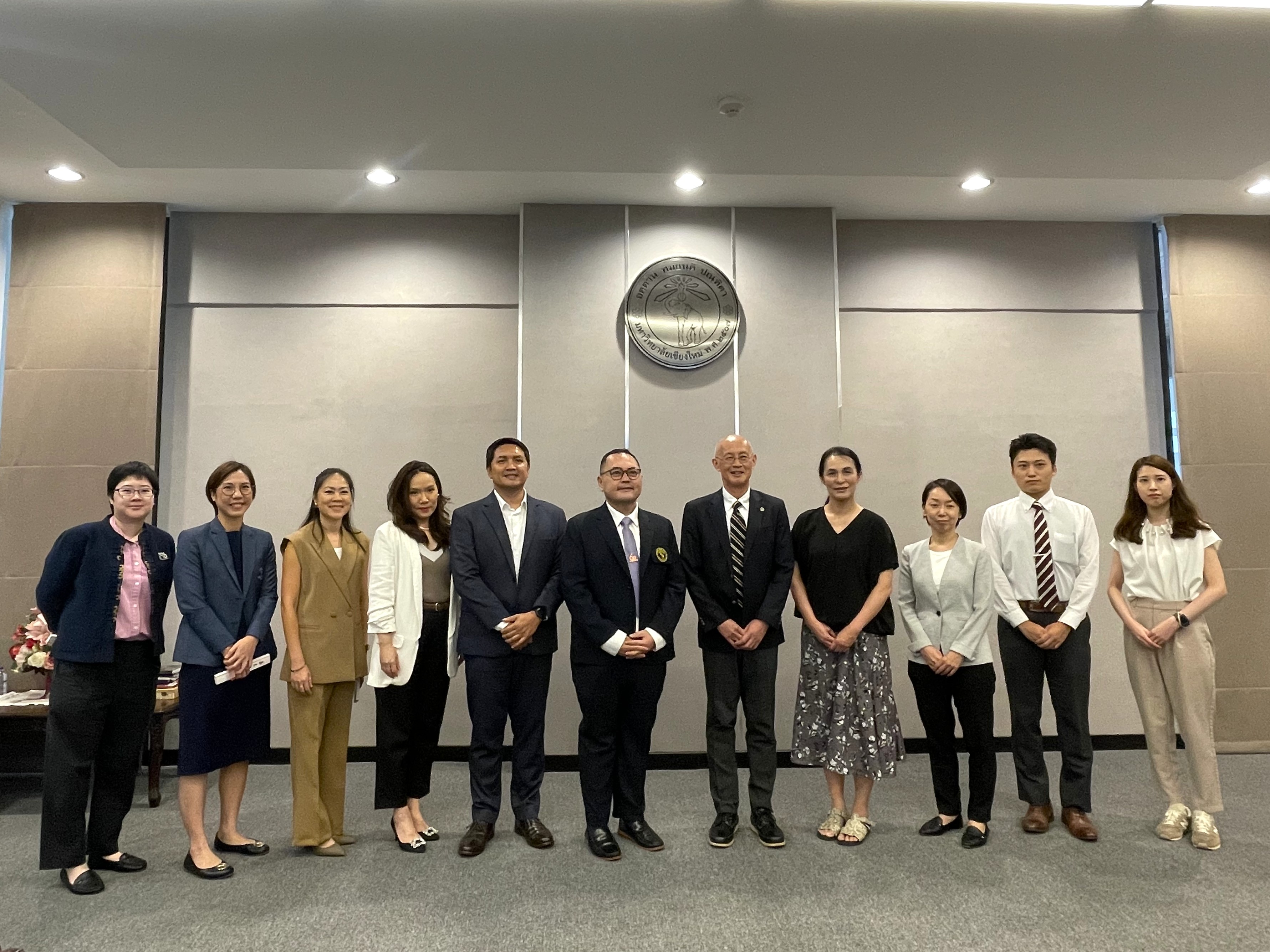 表敬訪問では、Pradthana Jaipong学長補佐、Pailin Phujeenaphan政治行政学部長、Rawee Jansong人文学部長他6名と、国際人間科学部や医学部医学科・保健学科で既に行われている学生交流に加え、ウェルビーイング分野等での研究交流の可能性について議論を行いました。