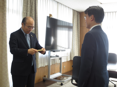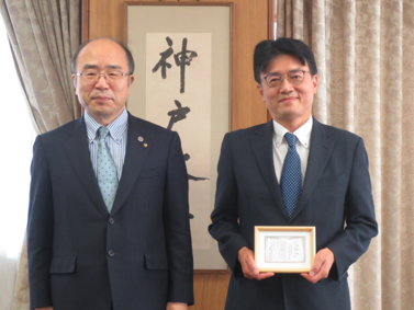 全国労働衛生週間(10月1日~10月7日)のイベントとして、保健学研究科が本年度「神戸大学の安全及び労働衛生に係る表彰」の被表彰団体として選定され、石田達郎保健学研究科長が代表者として藤澤正人学長より表彰状を授与されました。