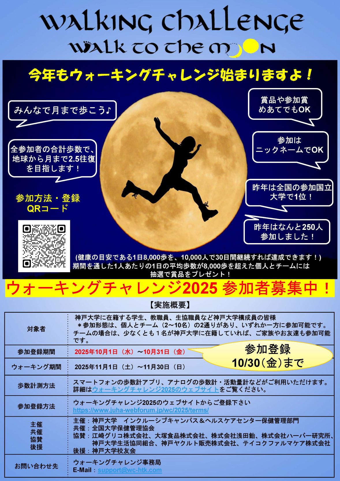 秋の季節を楽しみながら、皆様の健康習慣とリフレッシュが両立できるイベントとして、神戸大学は、「ウォーキングチャレンジ2025」へ参加します。
