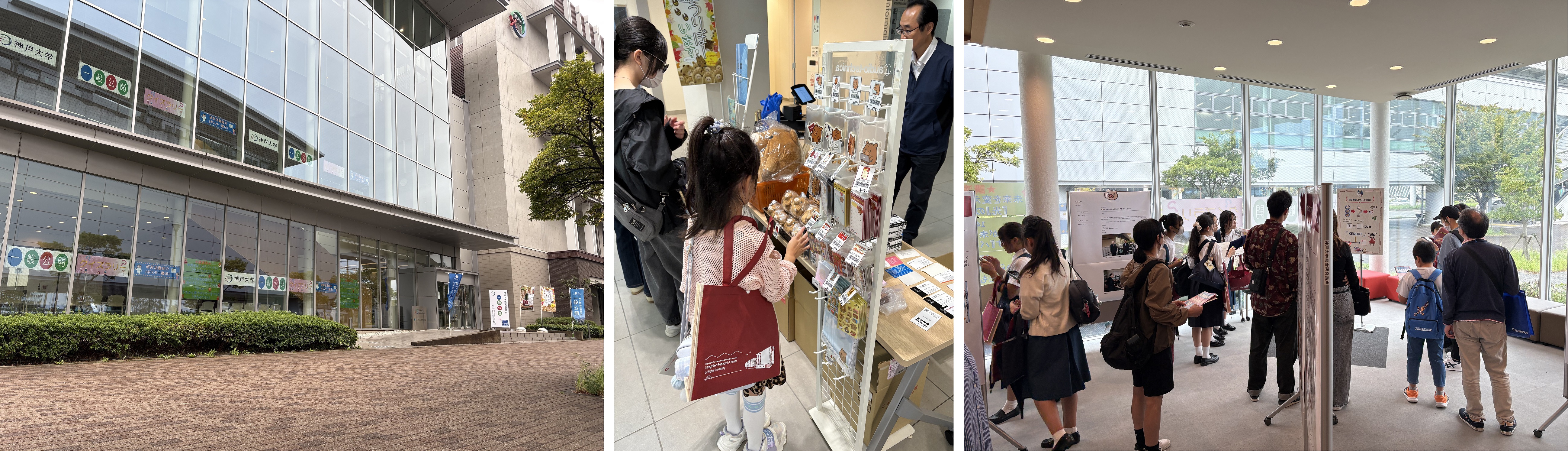 その他の催しとして、神戸大学のことをより知ってもらうための「神戸大学クイズラリー」や、統合研究拠点で実施している研究に関するポスター展示も行いました。来場者は、ポスター展示を見て研究内容に触れ、会場内に掲示されたヒントを参考に神戸大学に関するクイズラリーに挑戦して楽しまれました。また、神戸大学生協による神大オリジナルグッズのポップアップストアを設置し、神大オリジナルグッズや「神のまにまに」の特別販売も実施しました。