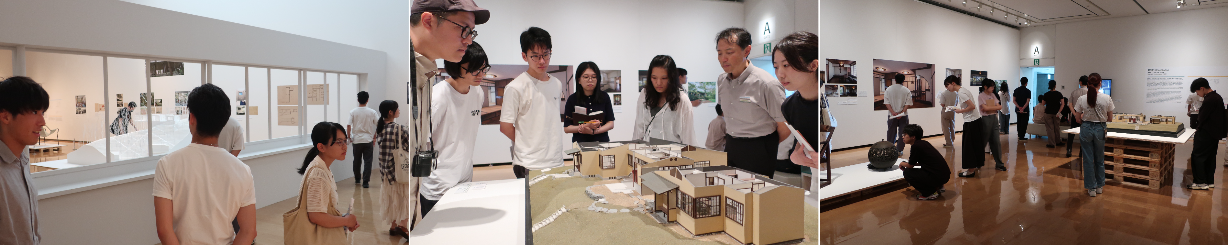 本学の演習・ワークショップは、県立美術館の担当学芸員が展覧会の見どころを説明するレクチャーで始まりました。同展は、3月から6月まで東京・国立新美術館で開催されましたが、同館との展示の違いや、ル・コルビュジエの代表作「ヴィラ・ル・ラク」の実物大の水平連続窓を再現した際の舞台裏を披露してくださいました。続いて、大学院人文学研究科の長坂一郎教授が「実験としてのデザイン―仮説・検証の先へ」をテーマに、大学院工学研究科の高田暁教授が「藤井厚二の実験住宅と健康・快適な住まい」と題して、各30分間、イントロダクションを行いました。長坂教授は、住宅デザインの転換期となった半世紀を紐解き、「実験の手続き」という手法に沿って、各建築家の作品を背景、目的、方法、実験、結果、展望の各面から分析し紹介しました。高田教授は、大正時代から昭和時代初期に活躍した建築家・建築学者・藤井厚二の人生に触れながら、生涯5度も建てた実験住宅、代表作の「聴竹居」(ちょうちくきょ)について解説しました。その後、参加者は1時間程度、展覧会を鑑賞しました。