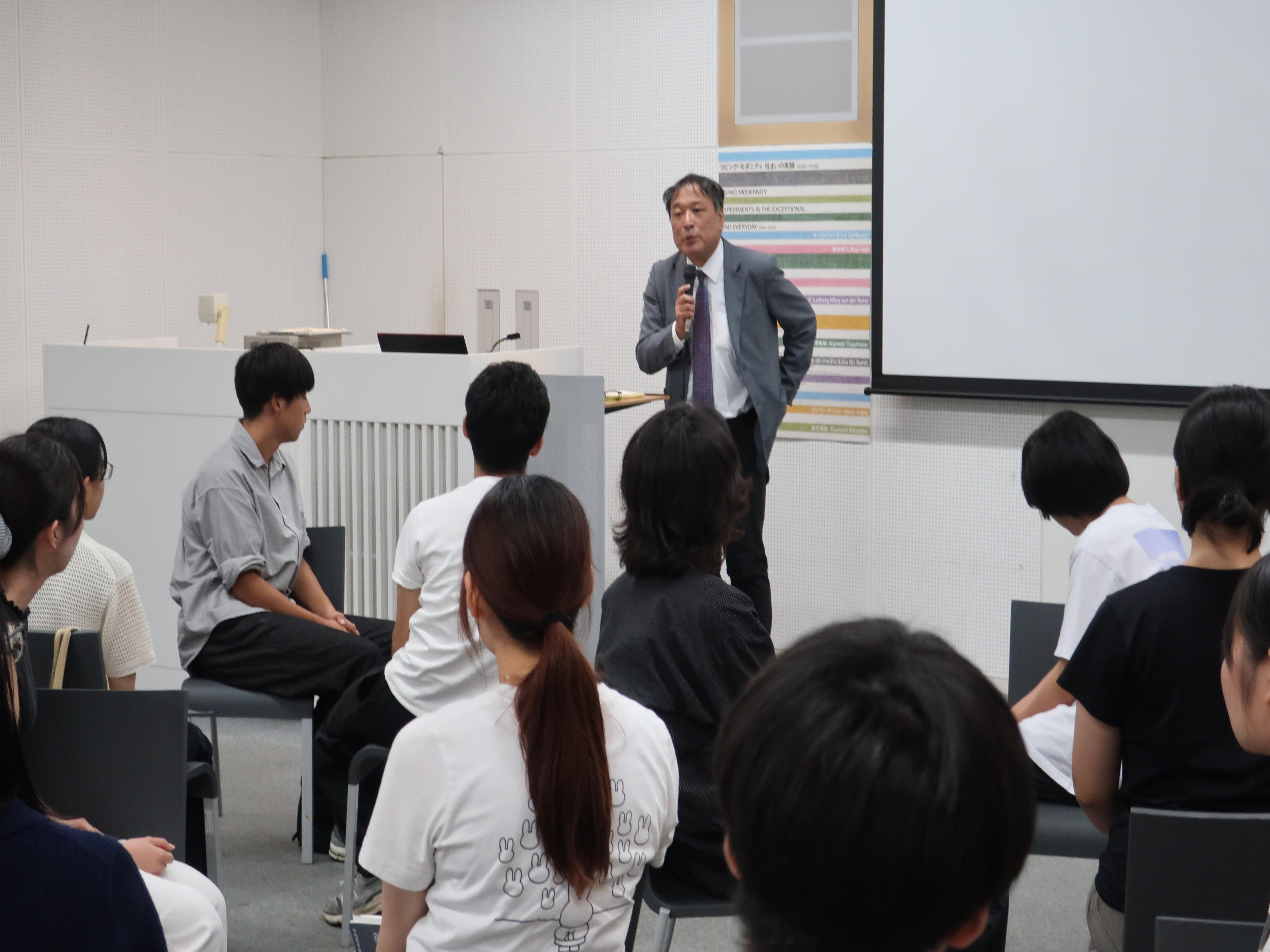 兵庫県立美術館でのワークショップを総括する鈴木広隆教授