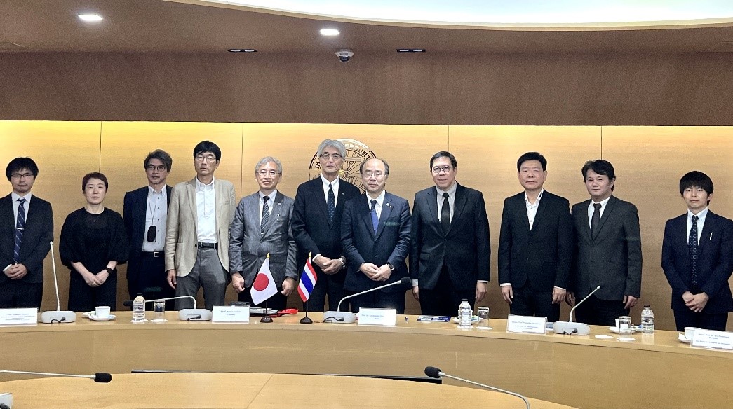 タマサート大学では、本学の卒業生であるSupasawad Chardchawarn学長、M.L.Pinitbhand Paribatra副学長(Research and Innovation)、Wasan Luangprapat氏(Director of the Thai Khadi Research Institute)の3名と医学・保健、工学分野等への交流拡大について意見交換を行いました。