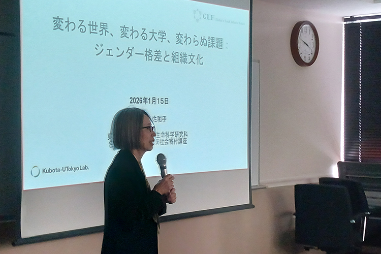 当日は、東京大学特任教授の白波瀬佐和子氏を講師にお迎えし、「変わる世界、変わる大学、変わらぬ課題:ジェンダー格差と組織文化」と題してご講演いただきました。