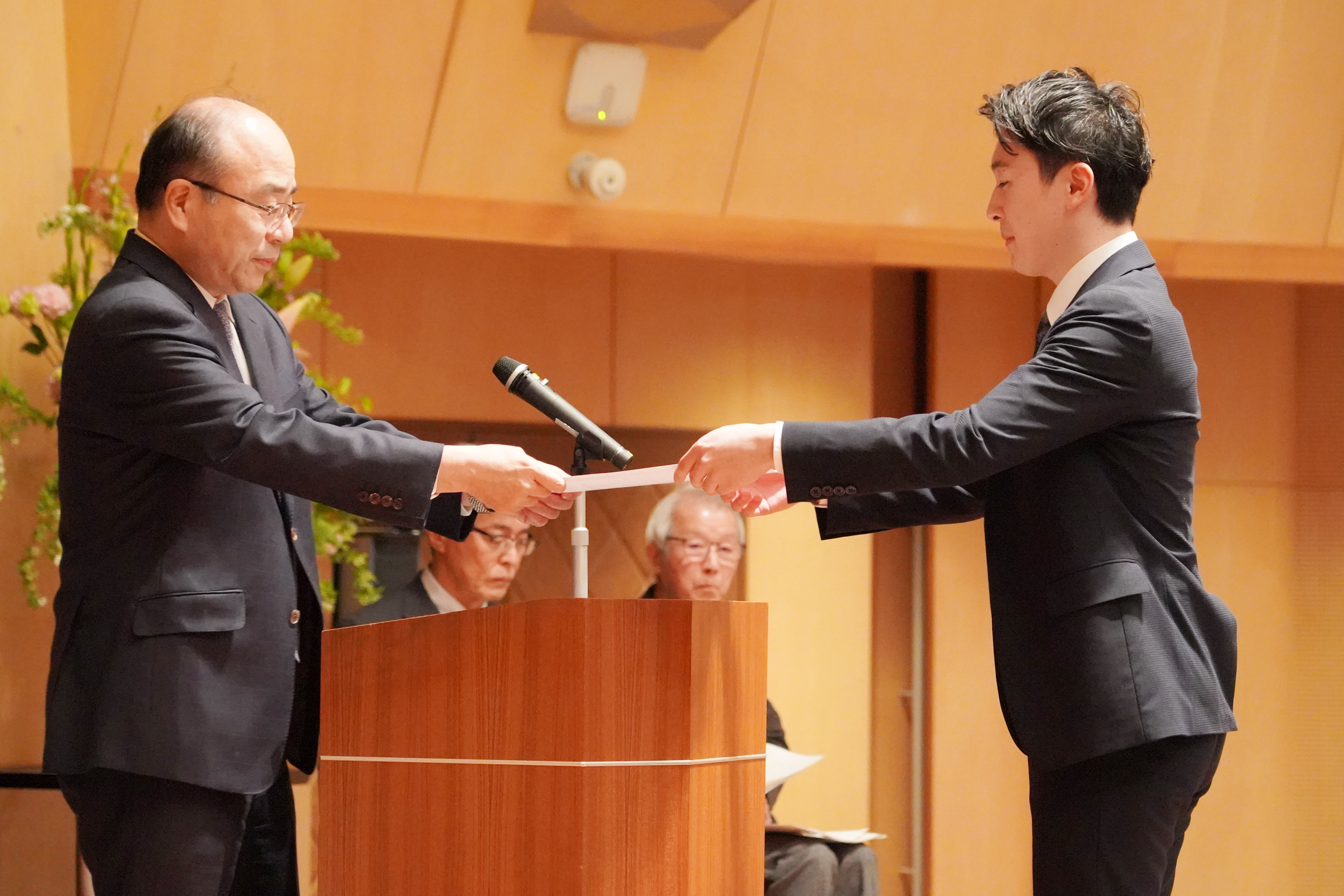 また今年度は課外活動における学外功労者への感謝状贈呈式が併せて行われ、ラグビー部、合気道部の指導に永年にわたり貢献された方2人が感謝状を贈呈されました。