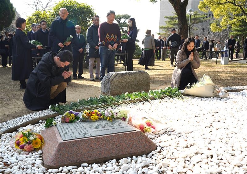 阪神・淡路大震災から31年となる1月17日を前に、神戸大学は16日、震災で亡くなった学生や教職員を追悼する慰霊献花式を六甲台キャンパス(神戸市灘区)、深江キャンパス(東灘区)で行いました。遺族や教職員、在学生、卒業生らが参列し、それぞれの慰霊碑の前で祈りをささげました。