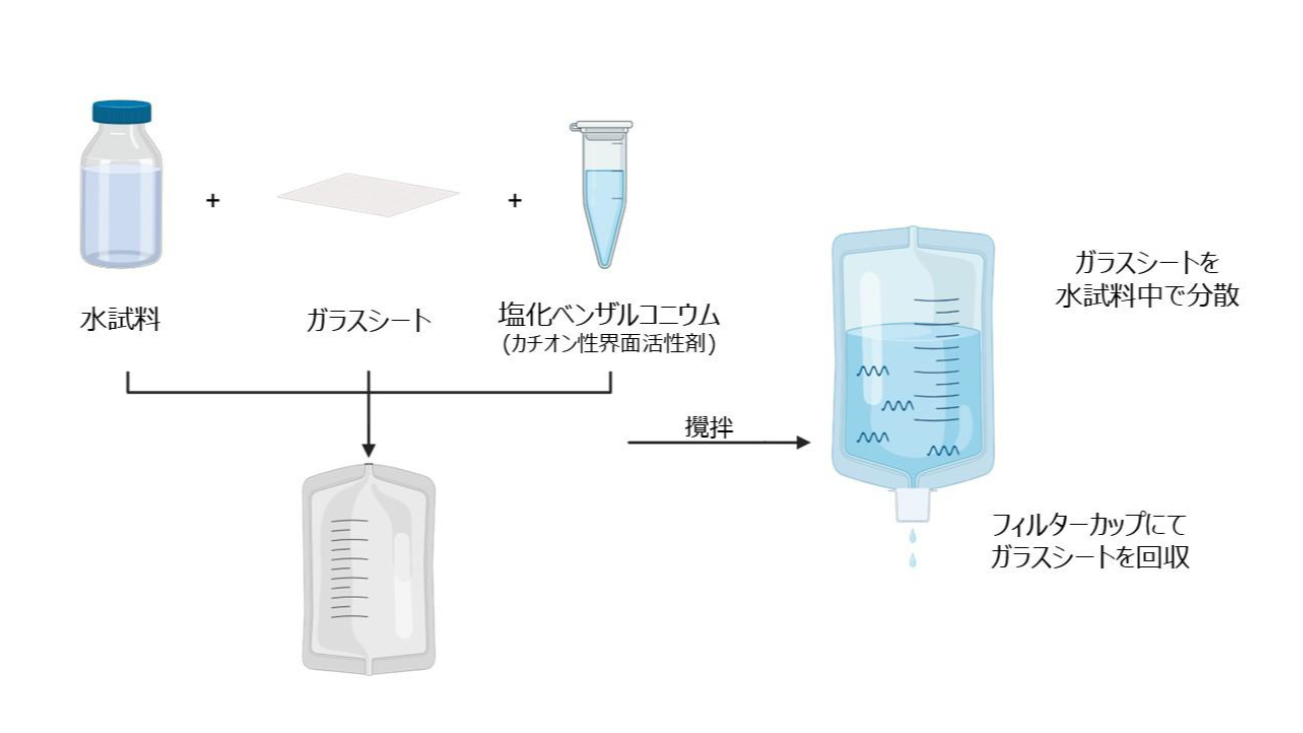 神戸大学との共同研究において、河川、海水、ため池から採水したサンプルを用いて、従来広く用いられてきた濃縮法(ガラス繊維フィルター法、Sterivexフィルター法)と性能を比較する実験を行いました。その結果、以下の点が明らかになりました。