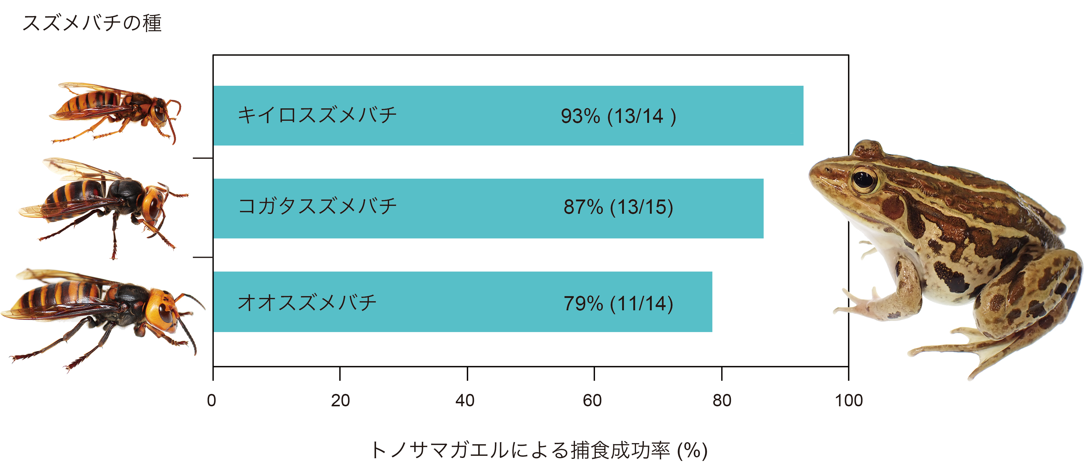 - トノサマガエルの成体は、オオスズメバチを含む3種のスズメバチを捕食できる。