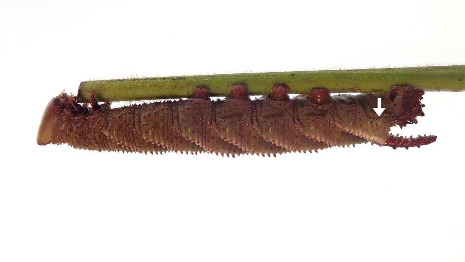 スズメガ科の一種であるエゾスズメ※1では、幼虫と蛹が音を出すこと自体は以前から知られていましたが、その音がどのように発生するのか、どの器官が関与しているのかは未解明でした。そこで本研究では、エゾスズメの幼虫と蛹を刺激して、音の発生とその仕組みを詳細に調べました。