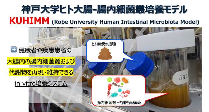 神戸大学で開発されたヒト腸内細菌叢培養モデル。各種プレバイオティクス・プロバイオティクスなどの効果評価に活用される。ヒトの腸内環境(偏性嫌気性細菌優勢、菌種レベルでの多様性維持、難培養細菌の増殖、産生される短鎖脂肪酸等の構成パターン等)を正しく再現している。