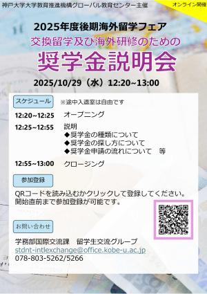 海外留学フェアの一環として「交換留学及び海外研修のための奨学金説明会」を実施します。