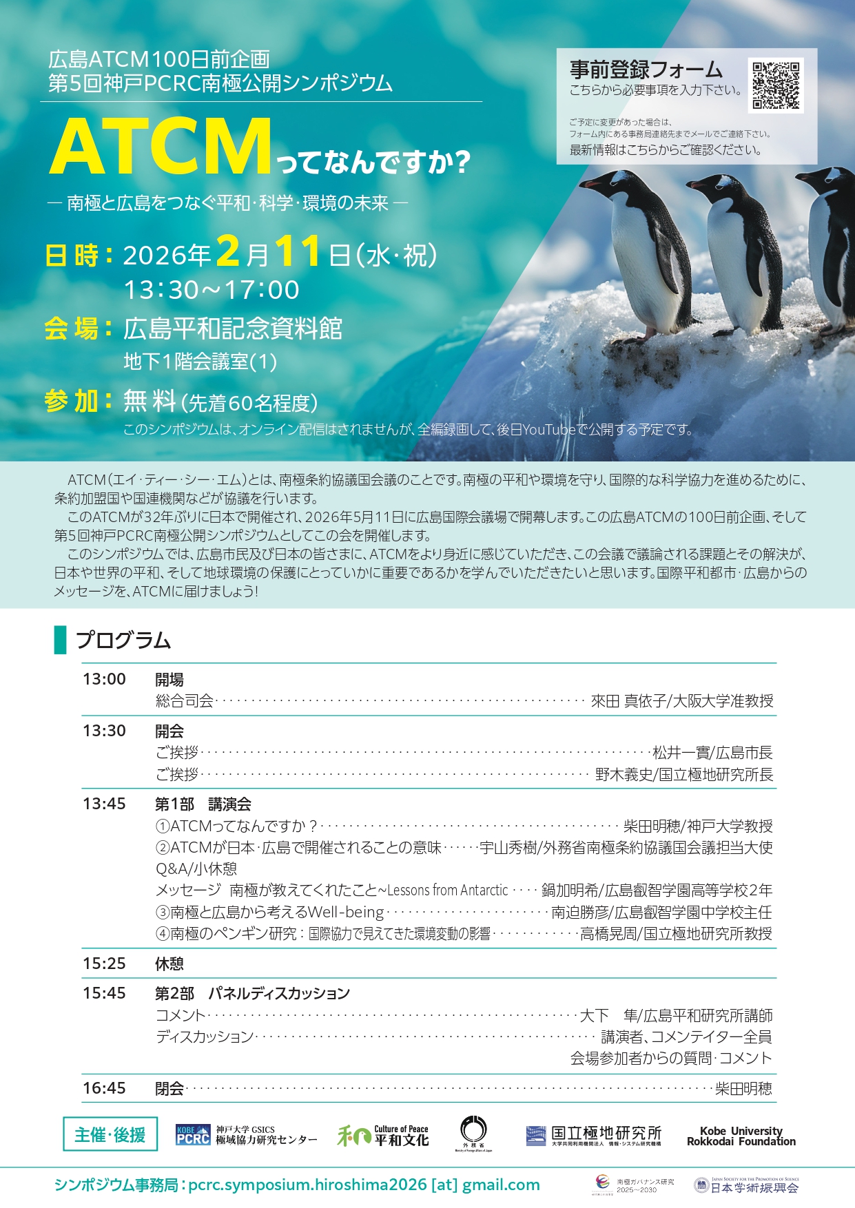 - 後援:広島市、外務省、国立極地研究所、神戸大学六甲台後援会
