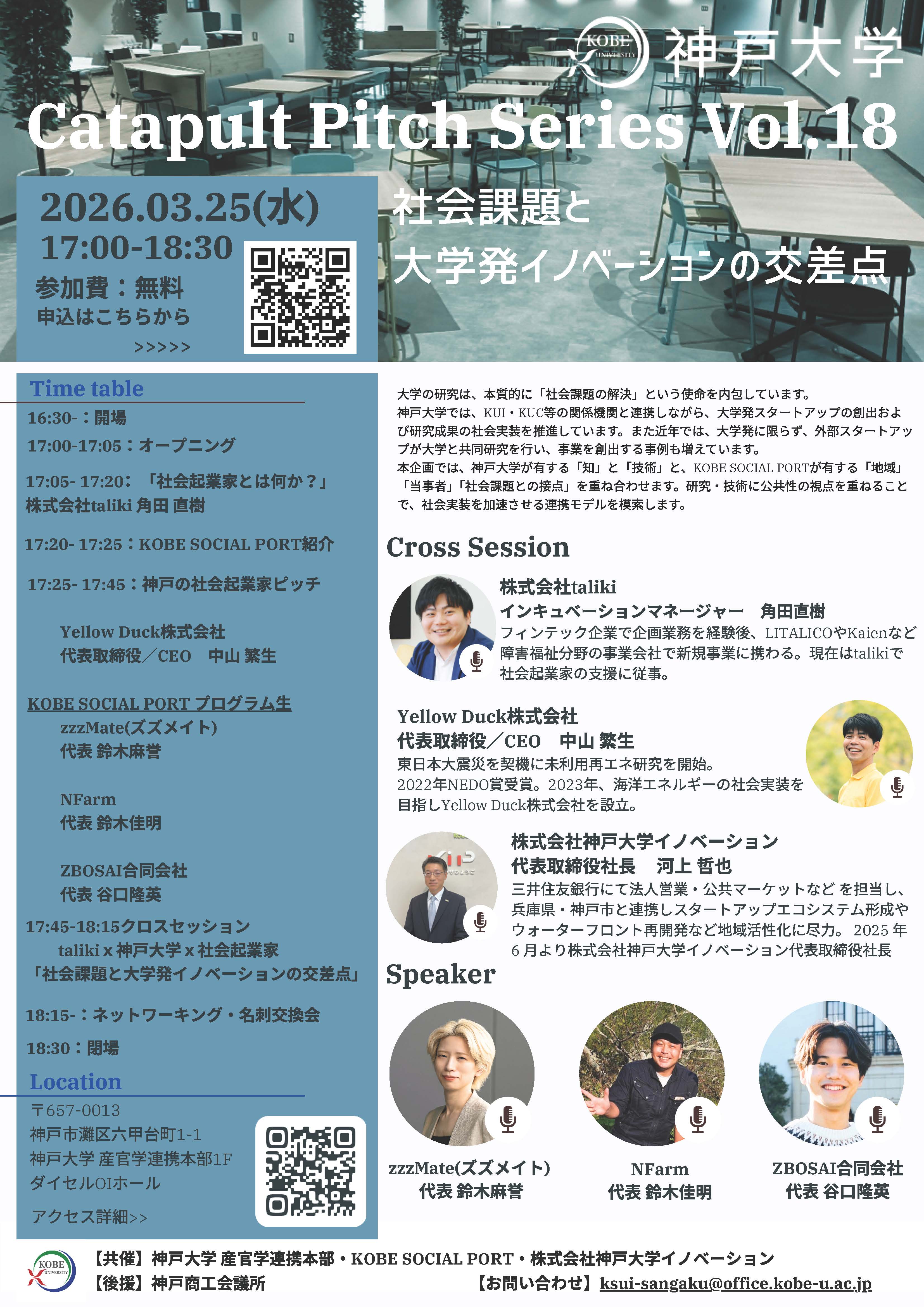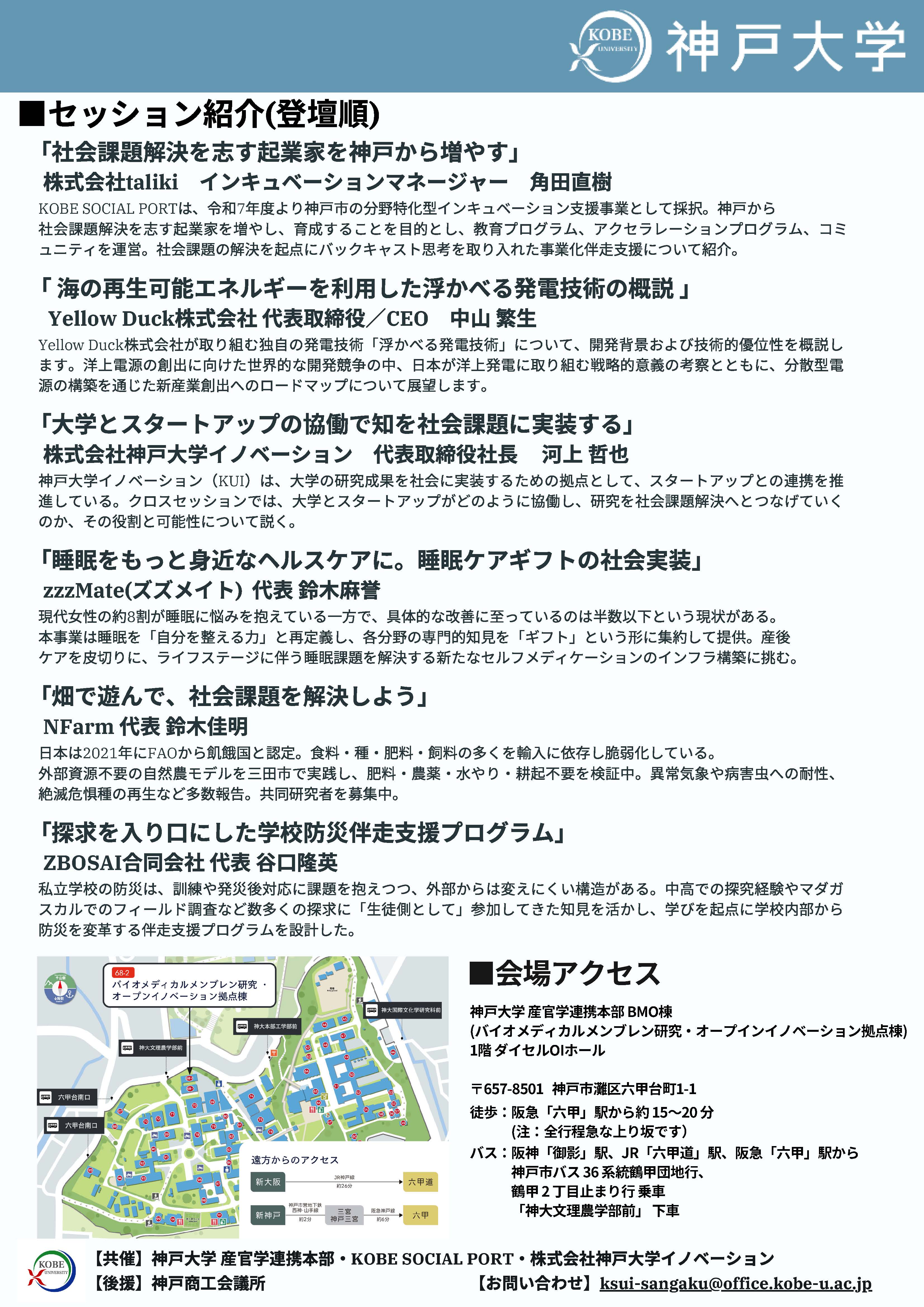 - クロスセッションtalikix神戸⼤学x社会起業家「社会課題と大学発イノベーションの交差点」(17:45~18:15)