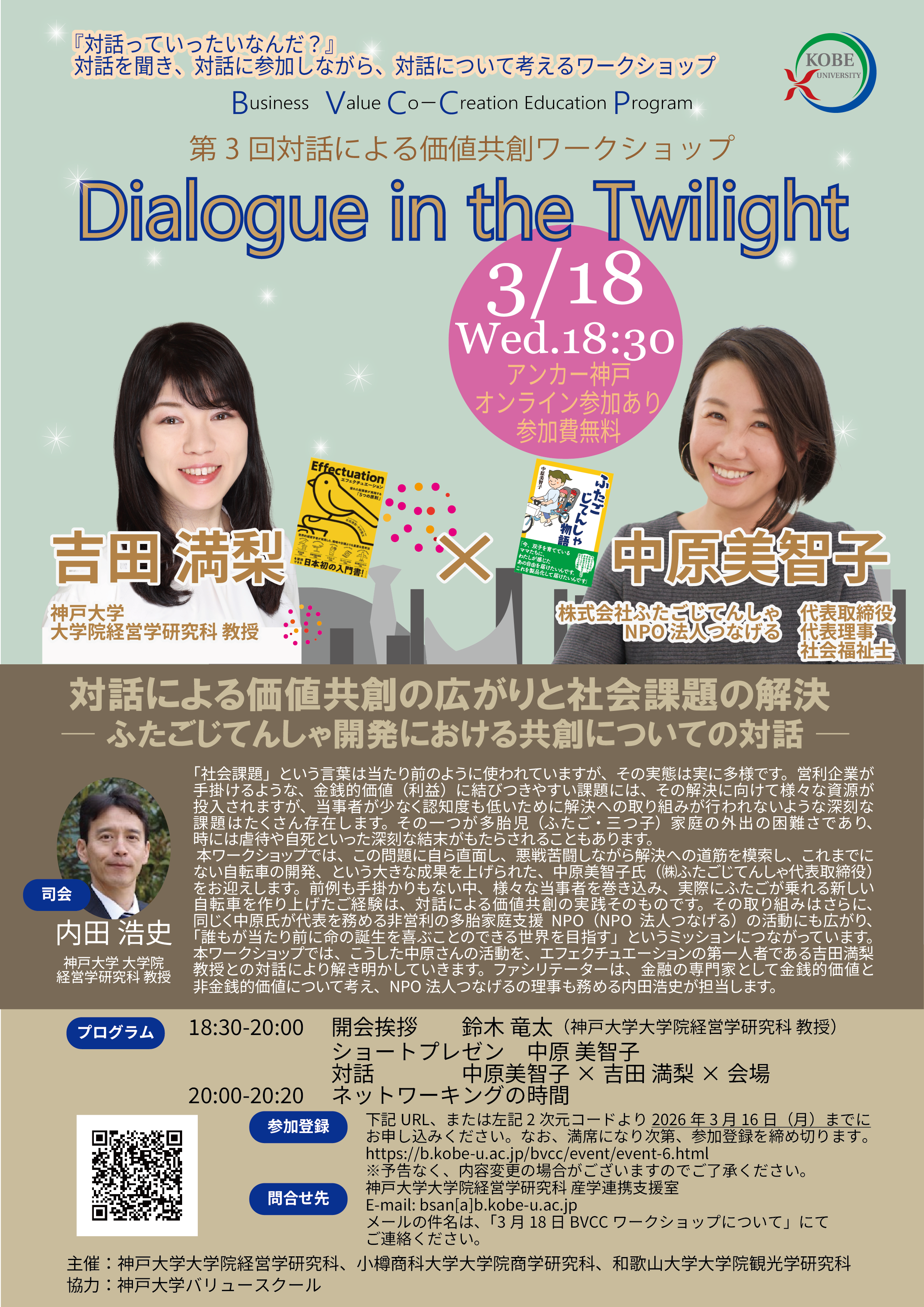 BVCCプログラム第3回対話による価値共創ワークショップーDialogue in the Twilightー 「対話による価値共創の広がりと社会課題の解決 ─ ふたごじてんしゃ開発における共創についての対話 ─」
