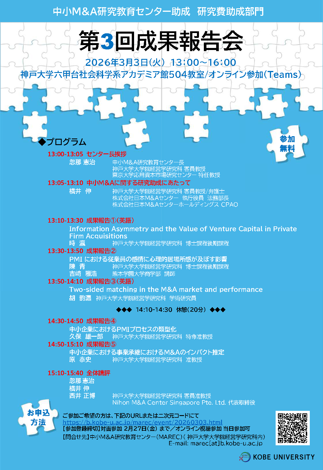 経営学研究科 中小M&A研究教育センター 第2回年次シンポジウム 「中小M&Aの研究・政策・実践を考える」