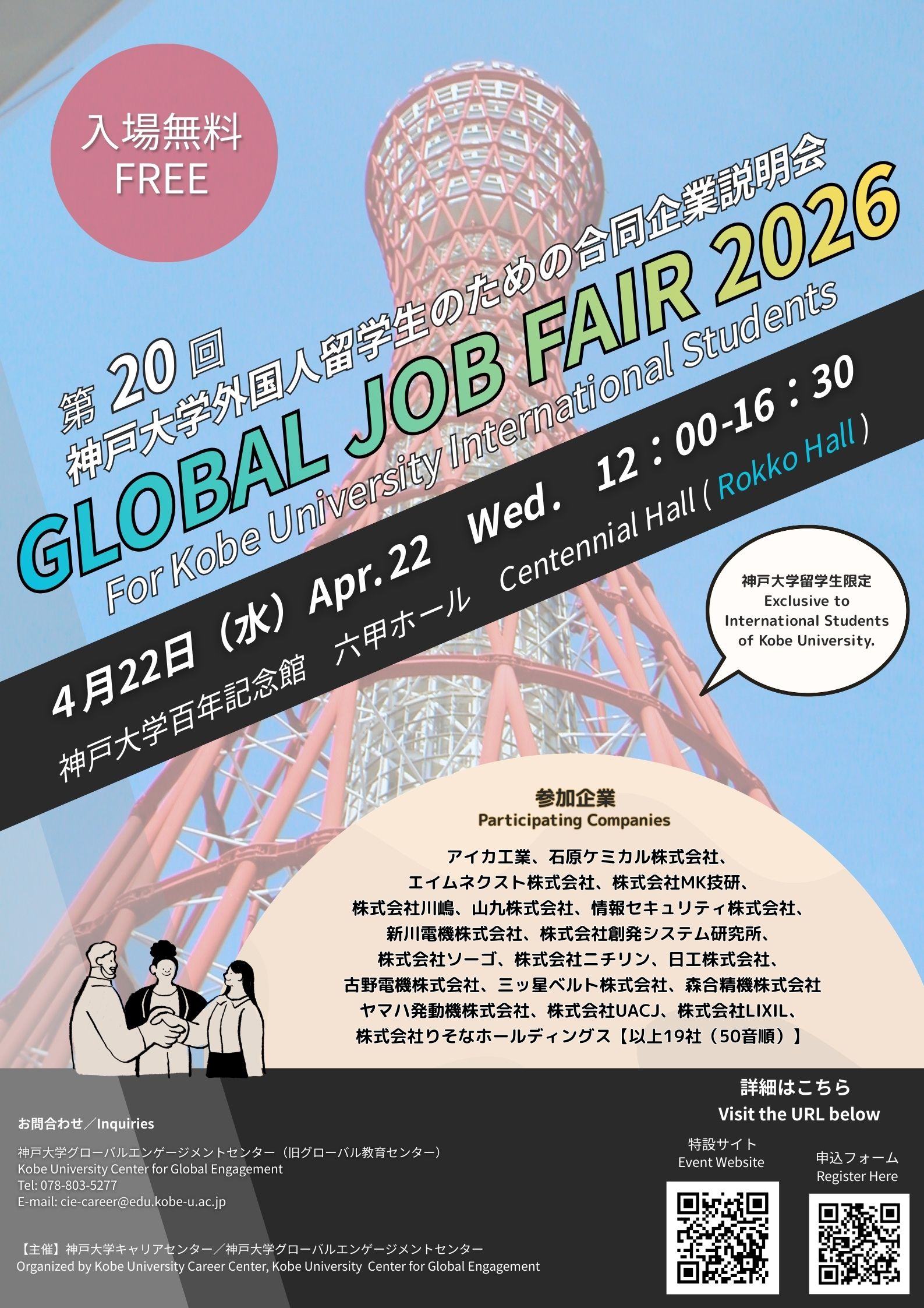 神戸大学留学生のための合同企業説明会 「第20回グローバルジョブフェア2026」