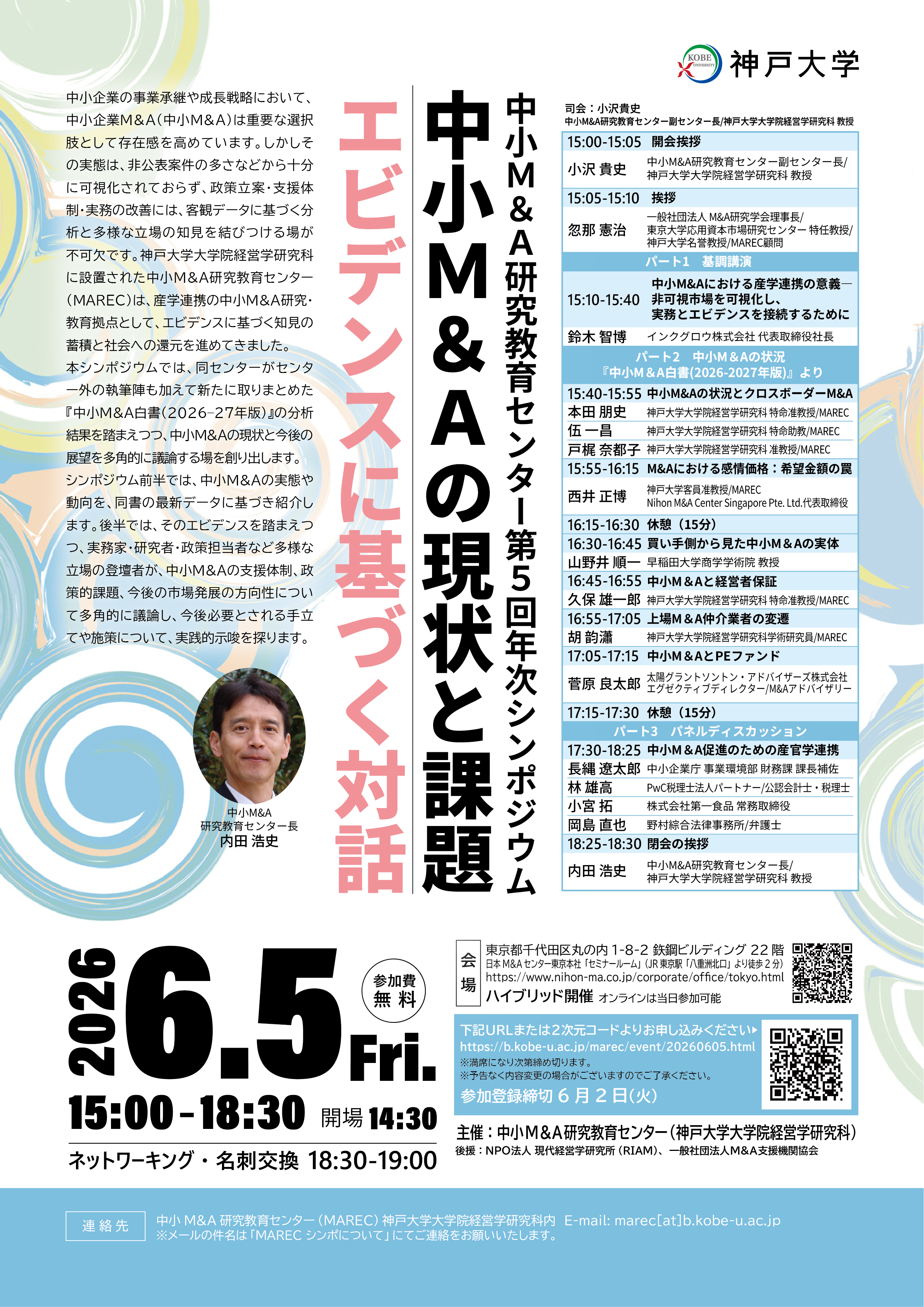 経営学研究科 中小M&A研究教育センター 第2回年次シンポジウム 「中小M&Aの研究・政策・実践を考える」