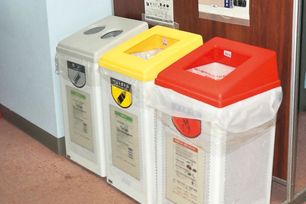 2009年度から毎年実施している環境キャラバンでは、キャンパスごとに事務室や教室、研究室、実験室、情報処理室等を対象に、机上位置での照度や室温を測定する他、ごみの分別状況などを視察することにより、今後の計画策定や改善に必要な情報の収集と、部局ごとに抱える課題の把握と整理を行い、問題点をチェックしています。